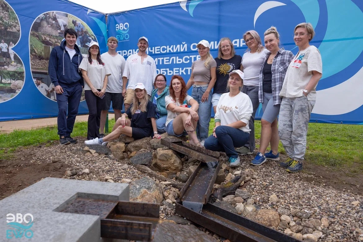 В августе этого года провели целых два семинара по строительству водных объектов! Помимо группы, собранной на сайте ЭВО, к нам приезжала организованная группа от школы ландшафтного дизайна.